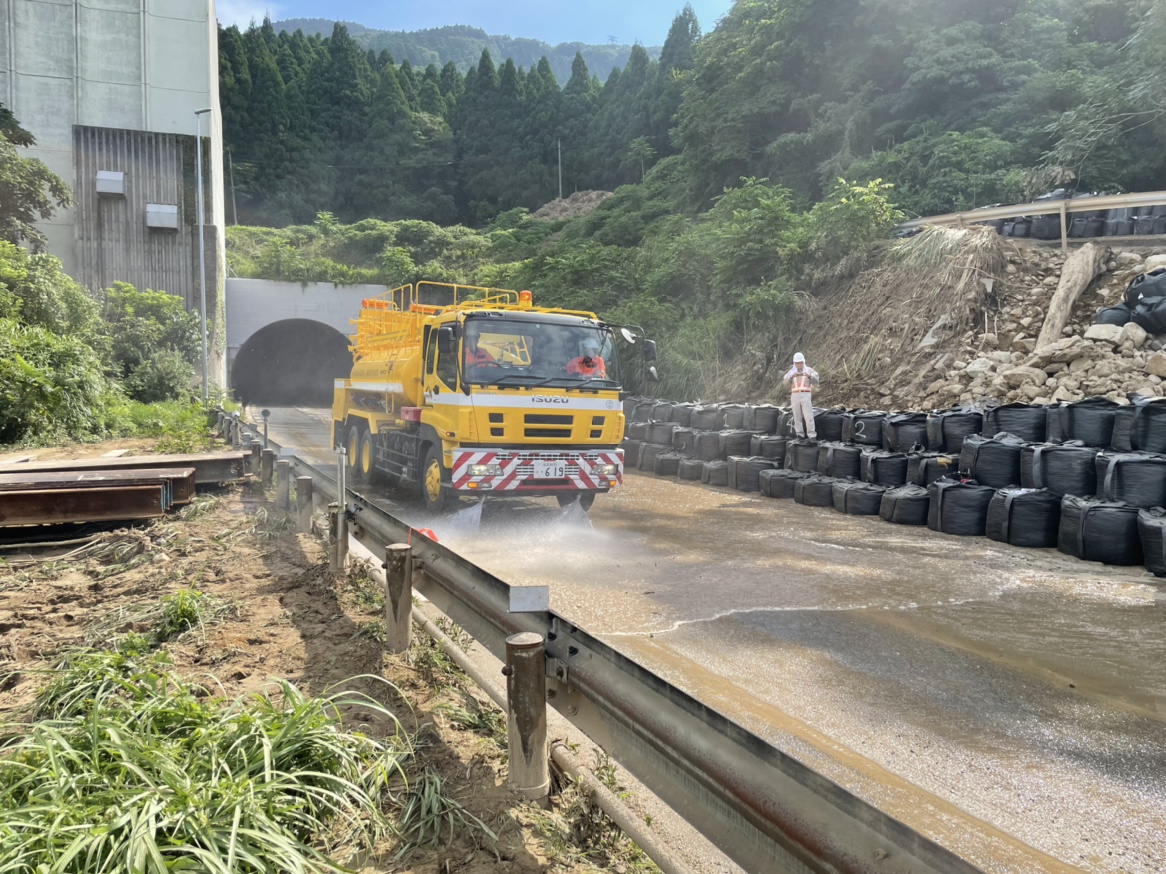 現地では安全を最優先に、早期開通を目指して災害復旧作業を進めております。