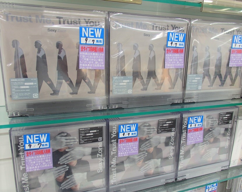 #SexyZone 最新シングル『Trust Me, Trust You.』が入荷致しました!3形態を同時購入されたお客様へ先着特典もご用意しております。限定盤や特典は数に限りがございますので、お求めの際はお早めにどうぞ!