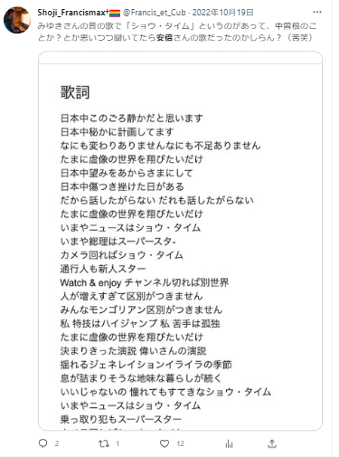 安倍さんのときは、人死にであるにも関わらず"こんな発言"していた人が言うと説得力ありますね。 twitter.com/Francis_et_Cub…