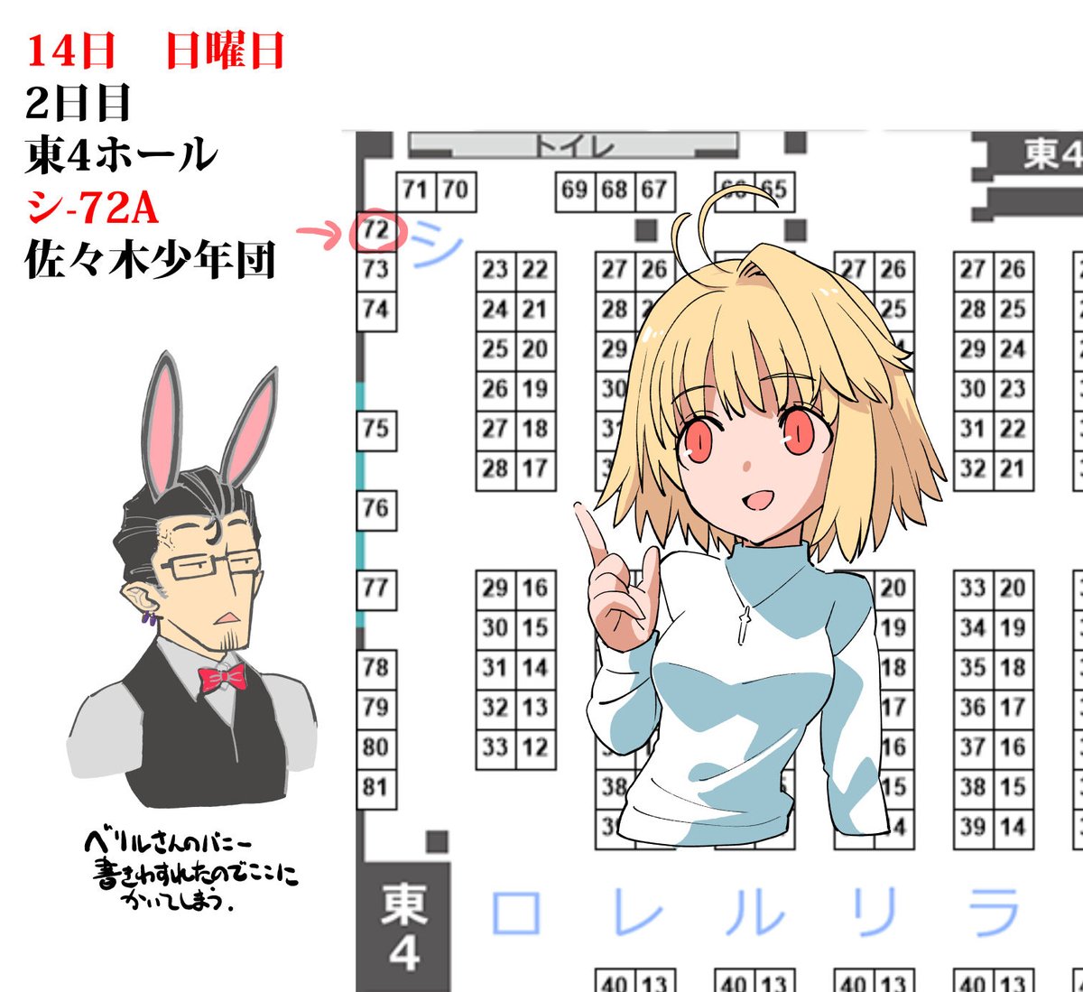 コミックマーケット100・8月14日(日曜日)東シ-72a【佐々木少年団】のお品書き作りました。頒布場所はこちらです。当日はよろしくお願いします。 #C100 #コミケ100