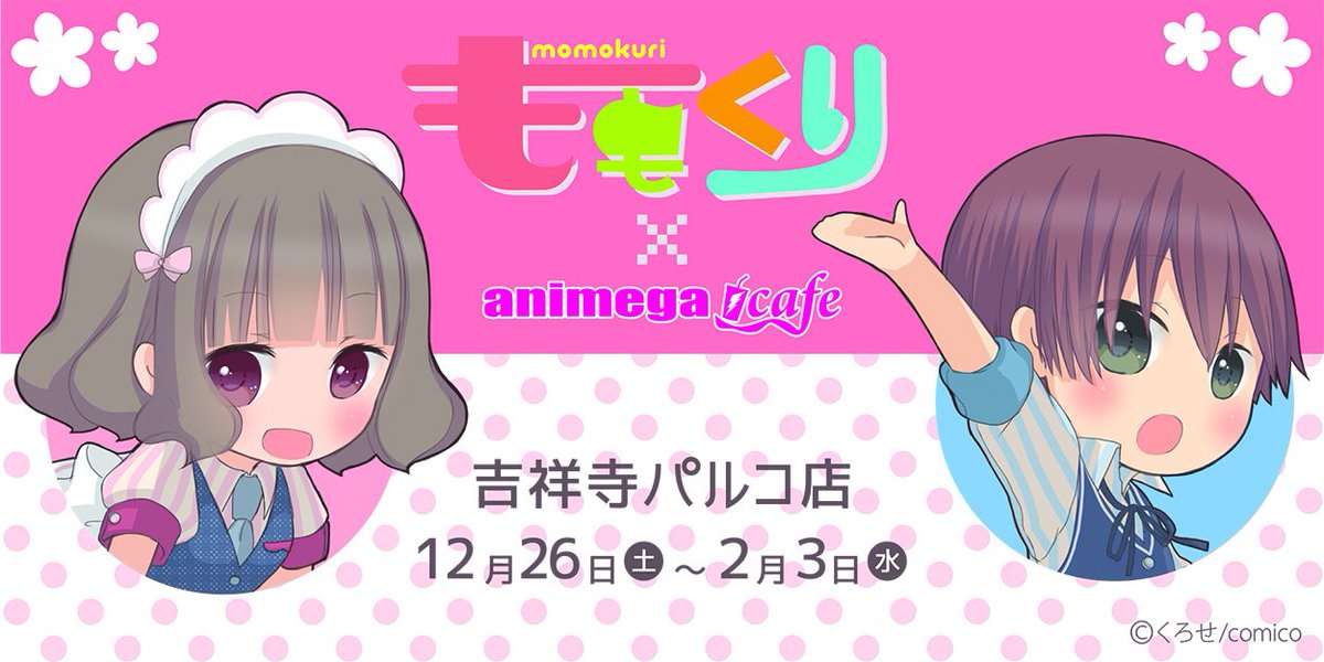 「ももくり×animega cage」開催決定!くろせさん描き下ろしイラストを使用したグッズやオリジナルフードなどを多数販売します!店内がももくりワールド一色のコラボカフェをお楽しみに♬momokuri-anime.jp/news/?p=154