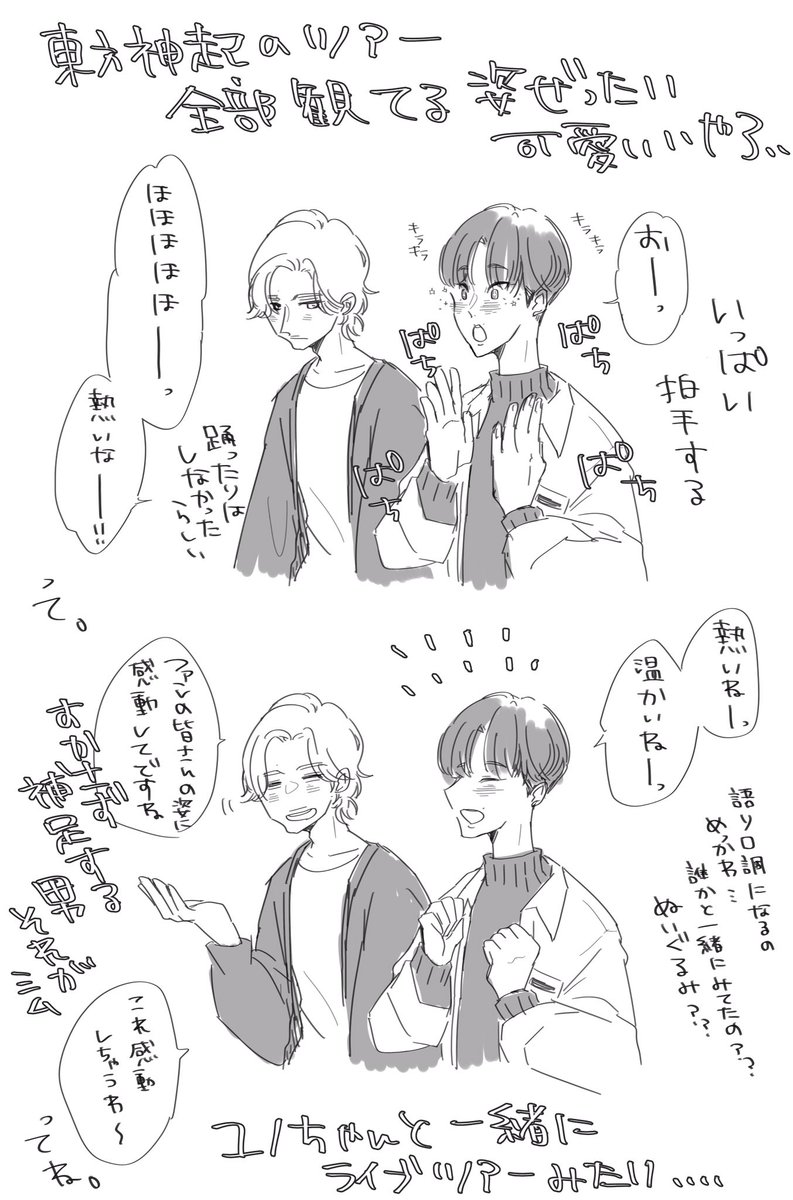 ユノちゃんとユウタくんが白いネコチャンみたいでめちゃめちゃ可愛いかったしチャンミンが始終楽しそうで一際デカくて何もかも好きなビギイベでした。ありがとうございました!!!!レポ描きたい!!!
