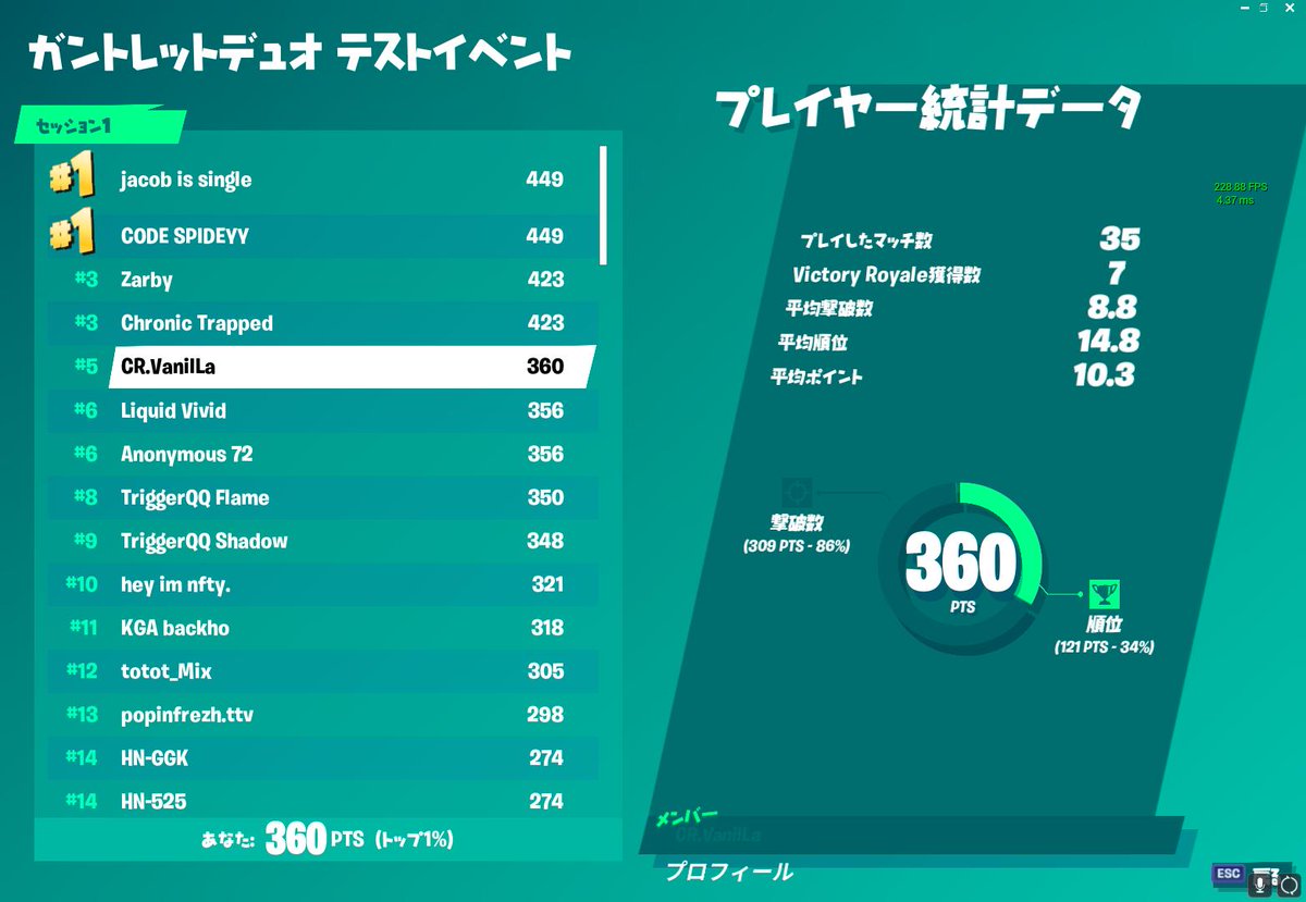 FNCS総合11位で無事決勝進出しました!🙌
