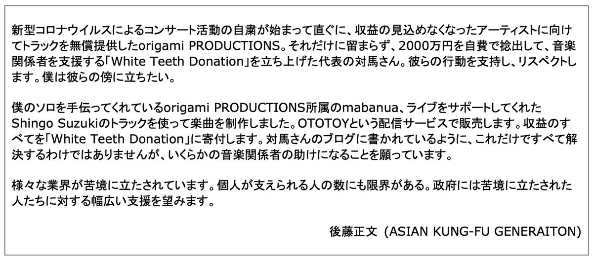 【後藤正文】フジテレビ『人と音楽』へ後藤正文の出演が決定しました。