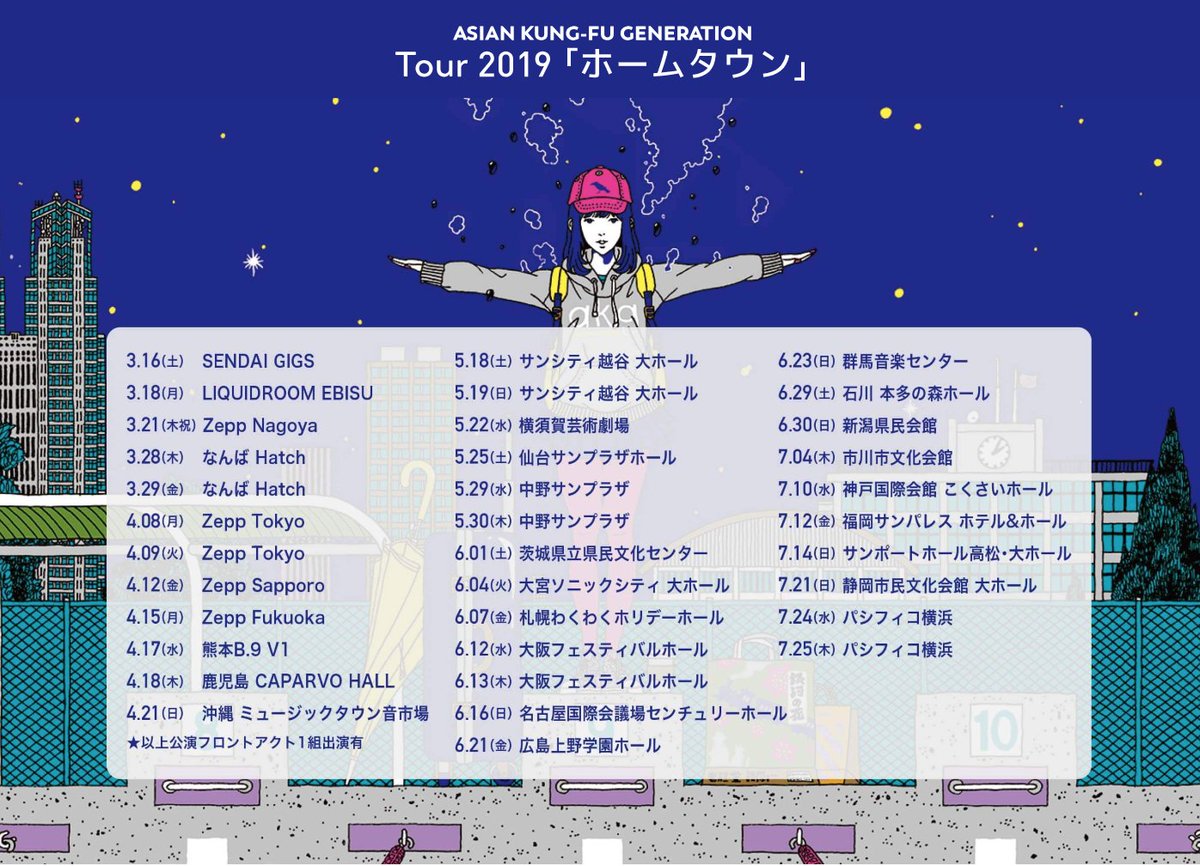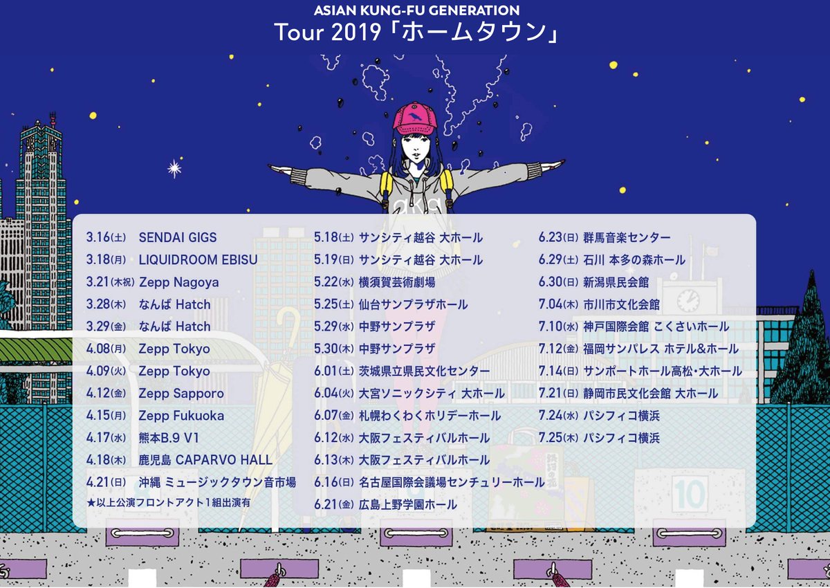【News】ASIAN KUNG-FU GENERATION Tour 2019『ホームタウン』のライブハウス12公演に参加するフロントアクト全ラインナップを発表!!