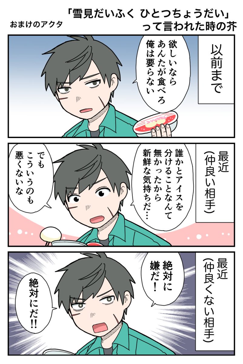 ついでなので雪見だいふく芥バージョンも描きました。 twitter.com/Kaoru_Inai/sta…