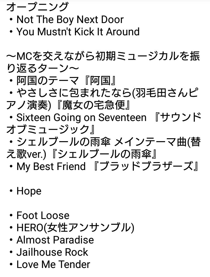『ONE MAN STANDING 2019』セトリ、坂本さんがMCで紹介してくれた編曲者さんも併記してみました(敬称略) #OMS2019