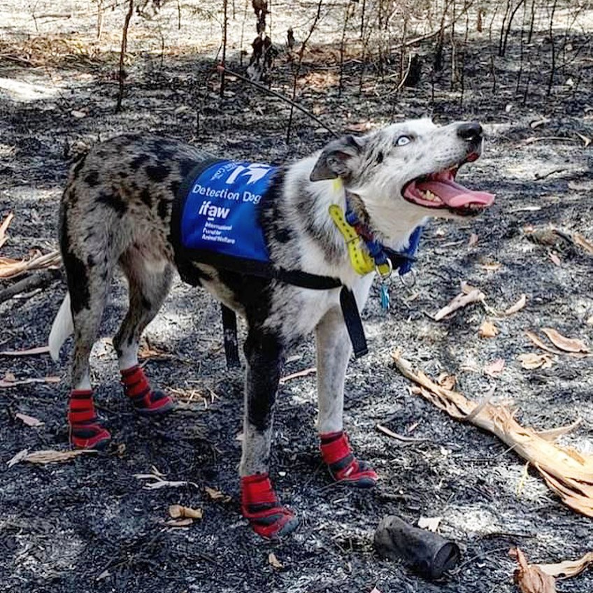 もとは捨て犬だったベアが、訓練を受けて2019~2020年に発生した山火事の灰の中から嗅覚を頼りにコアラを100頭以上救出。このたび国際動物福祉基金から表彰された。