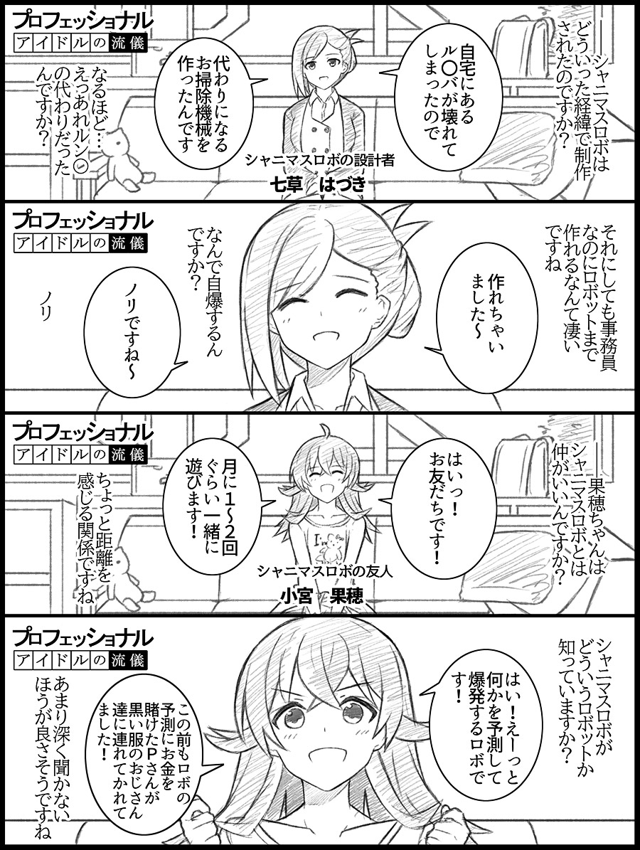 ボクの名前はシャニマスロボ4号機、シャニマスのガチャ更新を99.9%の確率で言い当てる凄いロボだよ。今日の更新は…三峰!なのはほぼ確定として三峰は…恒常!だってこれで限定だったらアンティーカ4周目は4枚が限定になりますからね…大丈夫必ず勝てます、ボクと高山Pと三峰の谷間を信じて下さい…!