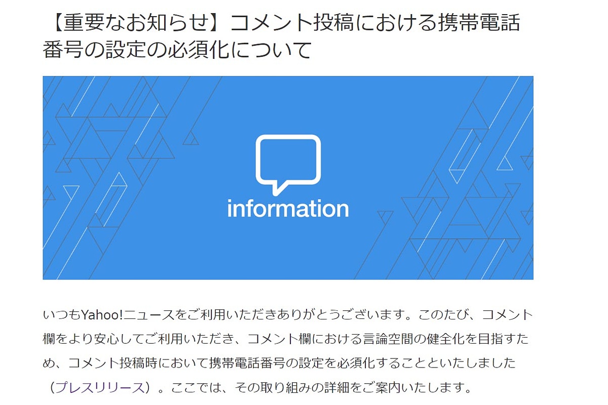 Yahoo!ニュース、コメント投稿で携帯電話番号を必須化 watch.impress.co.jp/docs/news/1448…