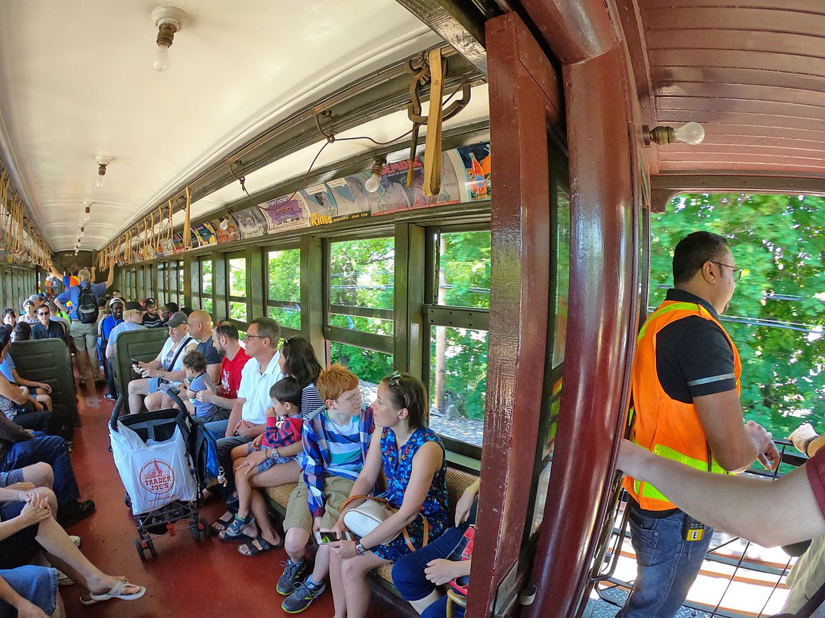 110年前の木造電車で急行線を疾走するなか、90年前のBタイプスタンダードカーとすれ違う様子。もはや今が西暦何年なのか分からなくなる。屋外デッキ添乗も含めて日本じゃ考えられない光景だ...