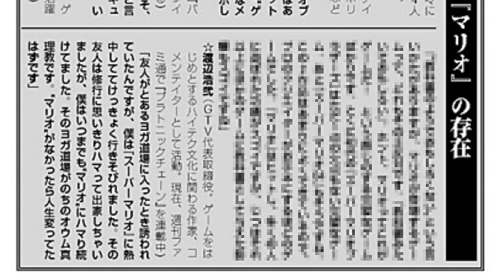 GC版『スーパーマリオサンシャイン』の宣伝企画でファミ通が発行したマリオ新聞に載っている、渡辺浩弐さんのマリオの話がぶっとんでるから読んでみて!