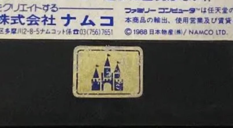 ごく稀にファミコンカセットの裏にこのようなお城の金色シールが貼ってあることがあります。どこかの玩具屋のシールだと思うのですが、いまだに特定できていません。何がご存知の方は是非、情報をお寄せ下さい。