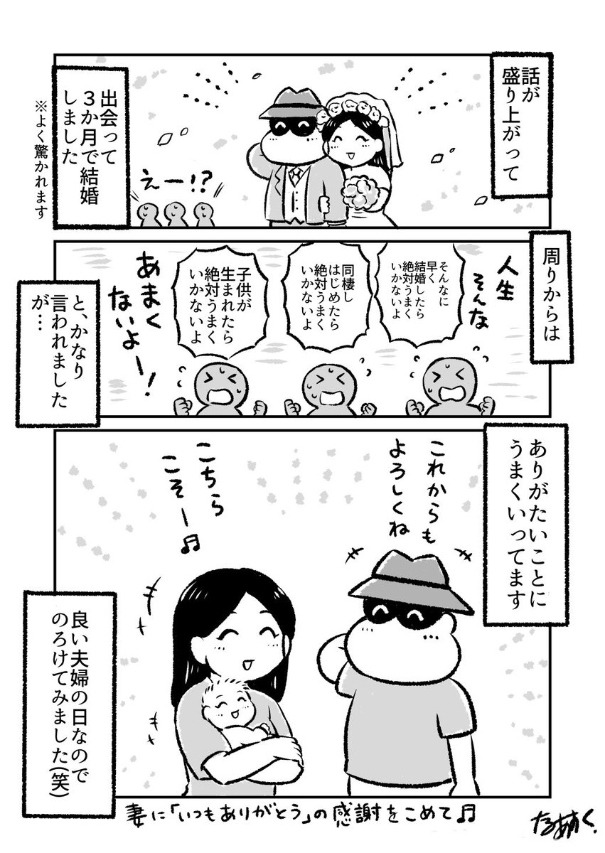 実は今日、結婚記念日なので以前「良い夫婦の日」の時に描いたエッセイを載せます〜✨