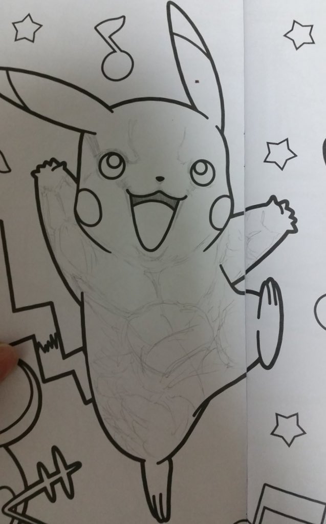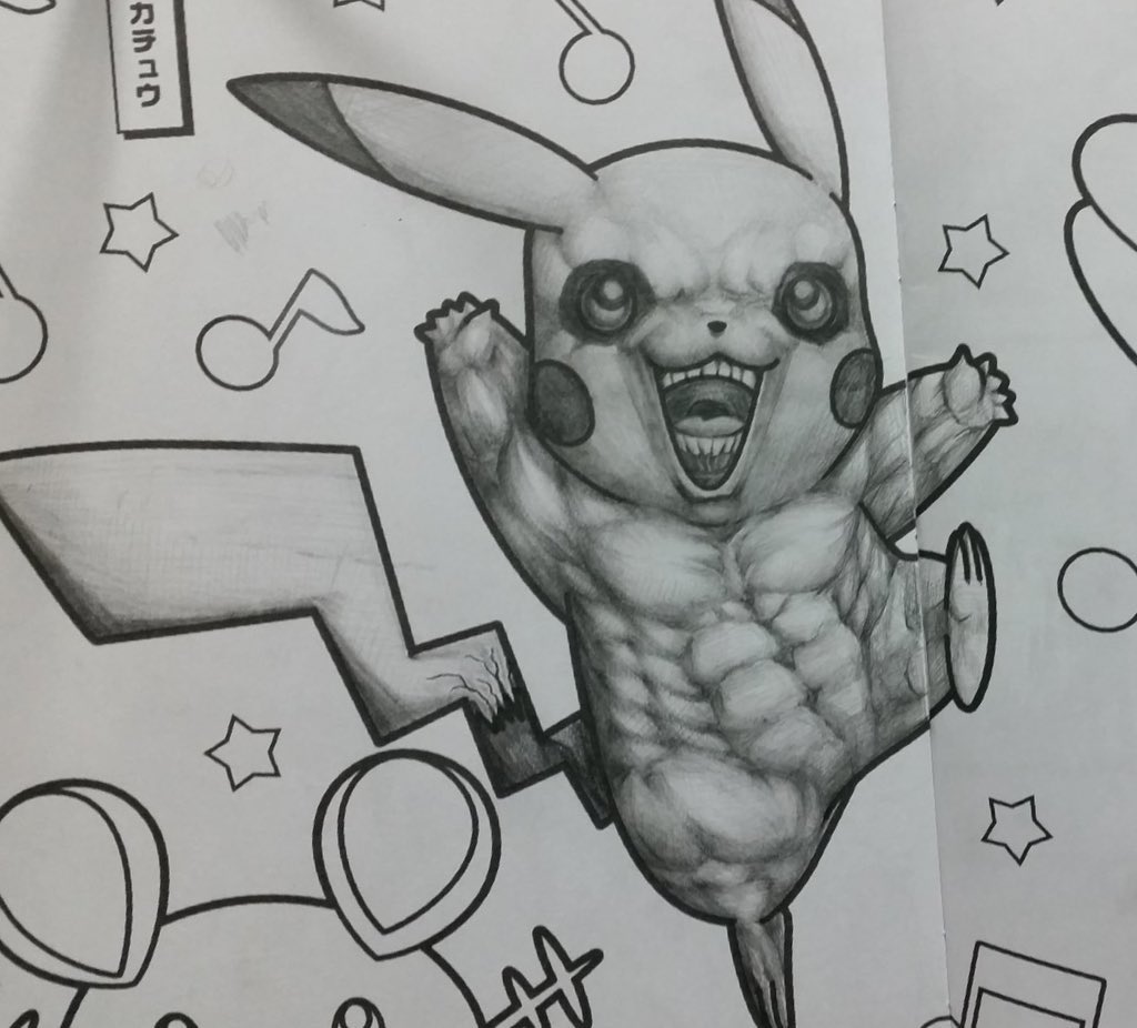 ポケモン塗り絵ガチ勢がムキムキに塗ったピカチュウが怖すぎるw