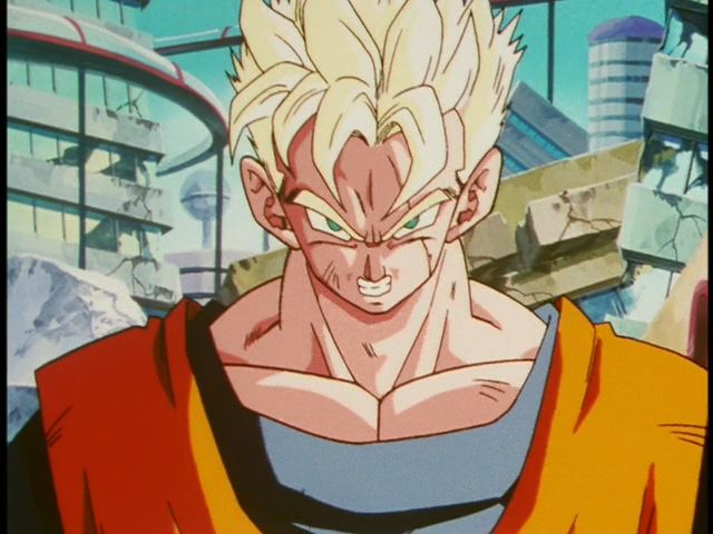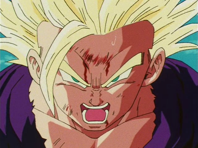 Kid Trunks (トランクス) turns Super Saiyan for the first time (In the Anime).