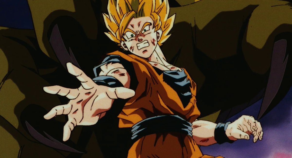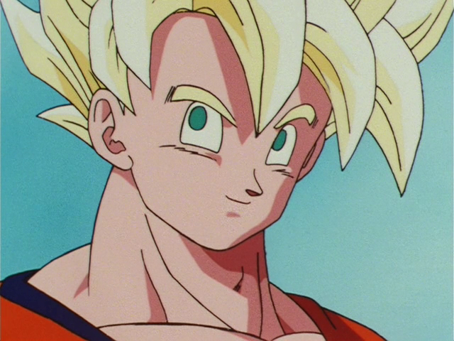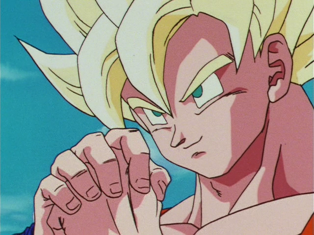 SSJ Goku (悟空) vs. Freeza (フリーザ).