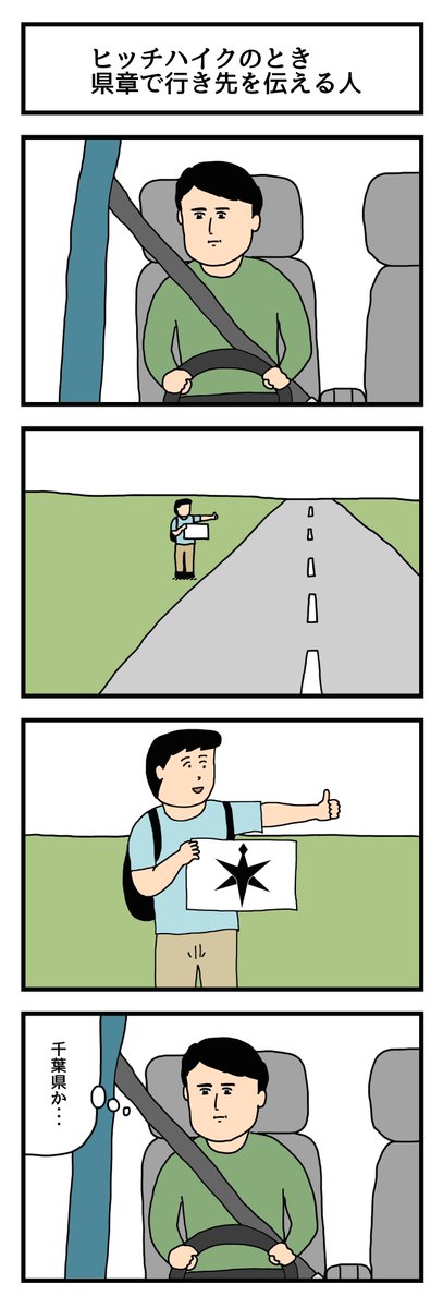 ヒッチハイクのとき県章で行き先を伝える人