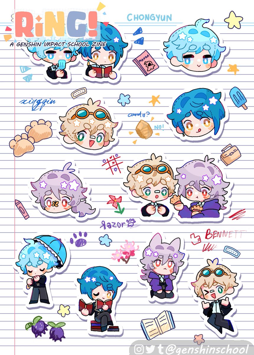 preview of my stickersheet for @genshinschool ft. xinqiu, chongyun, razor and bennett !! ✨