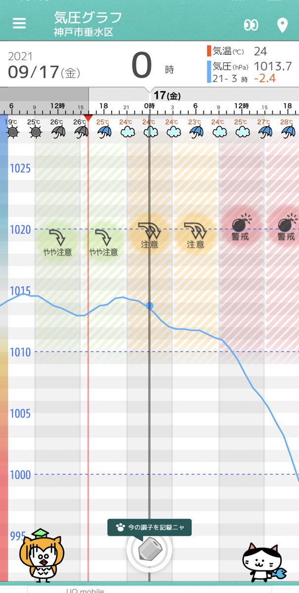 【気圧ガッツリ下がってるよー!】
