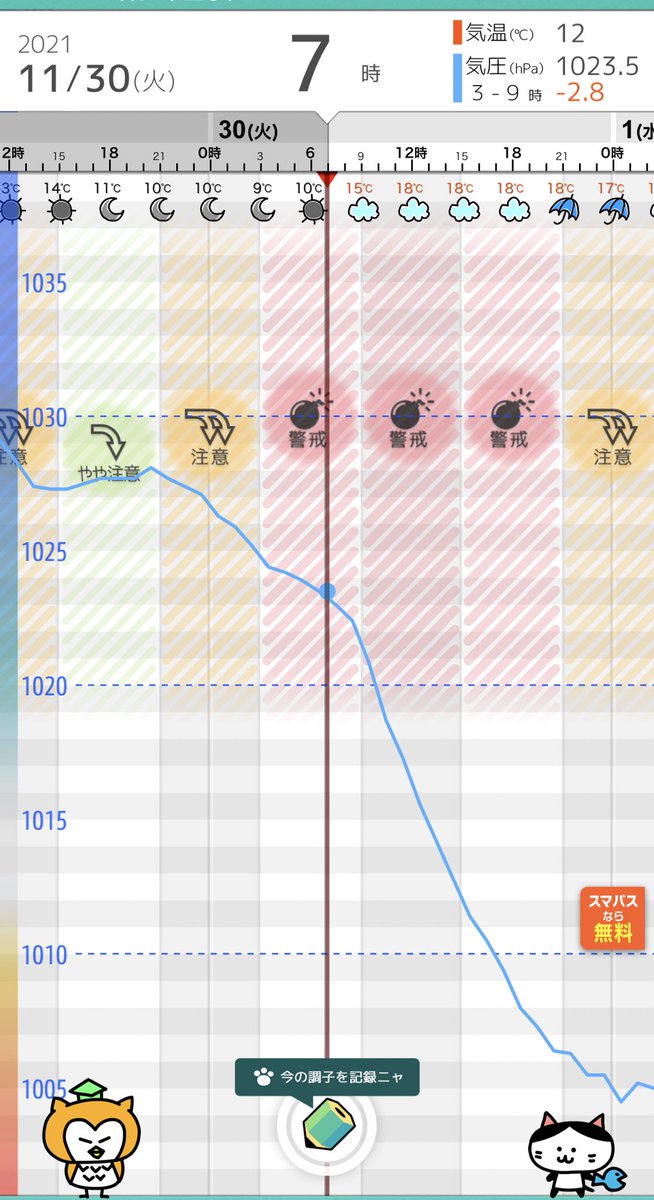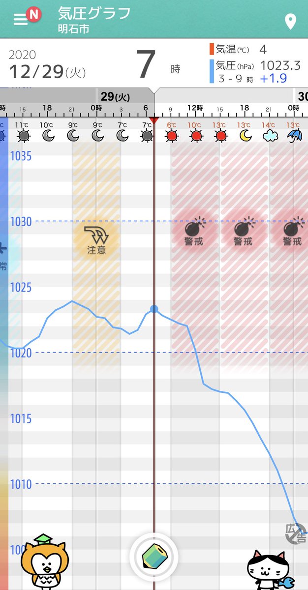 【気圧ガッツリ下がるよー!】