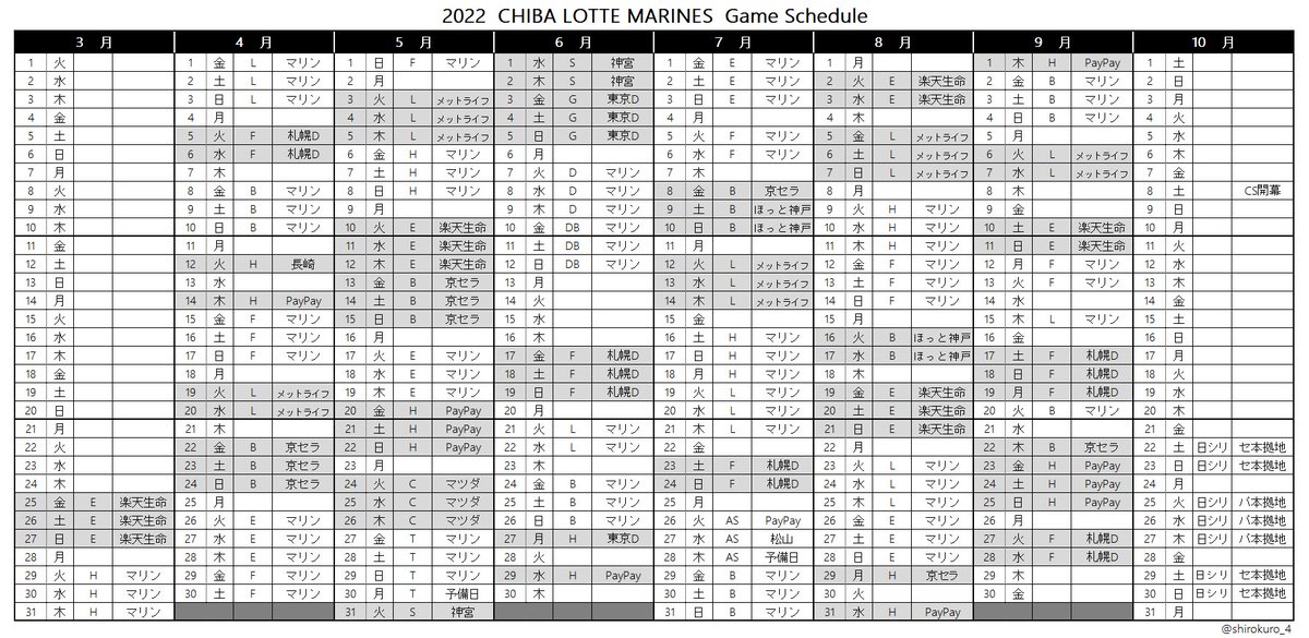 [2022年・マリーンズ日程早見表]