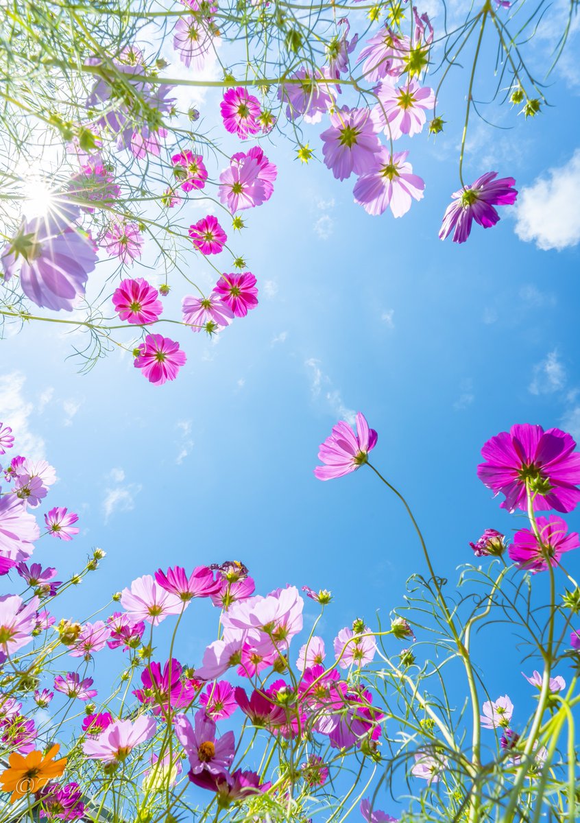 寝転がると広がる秋桜空