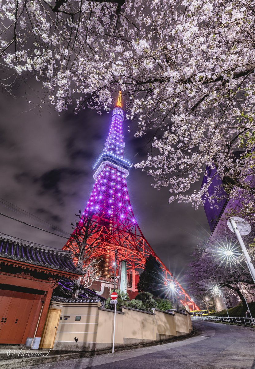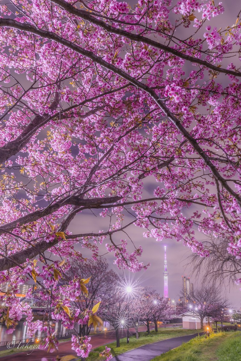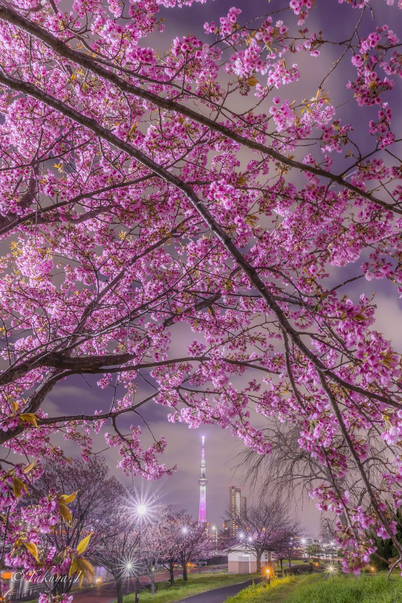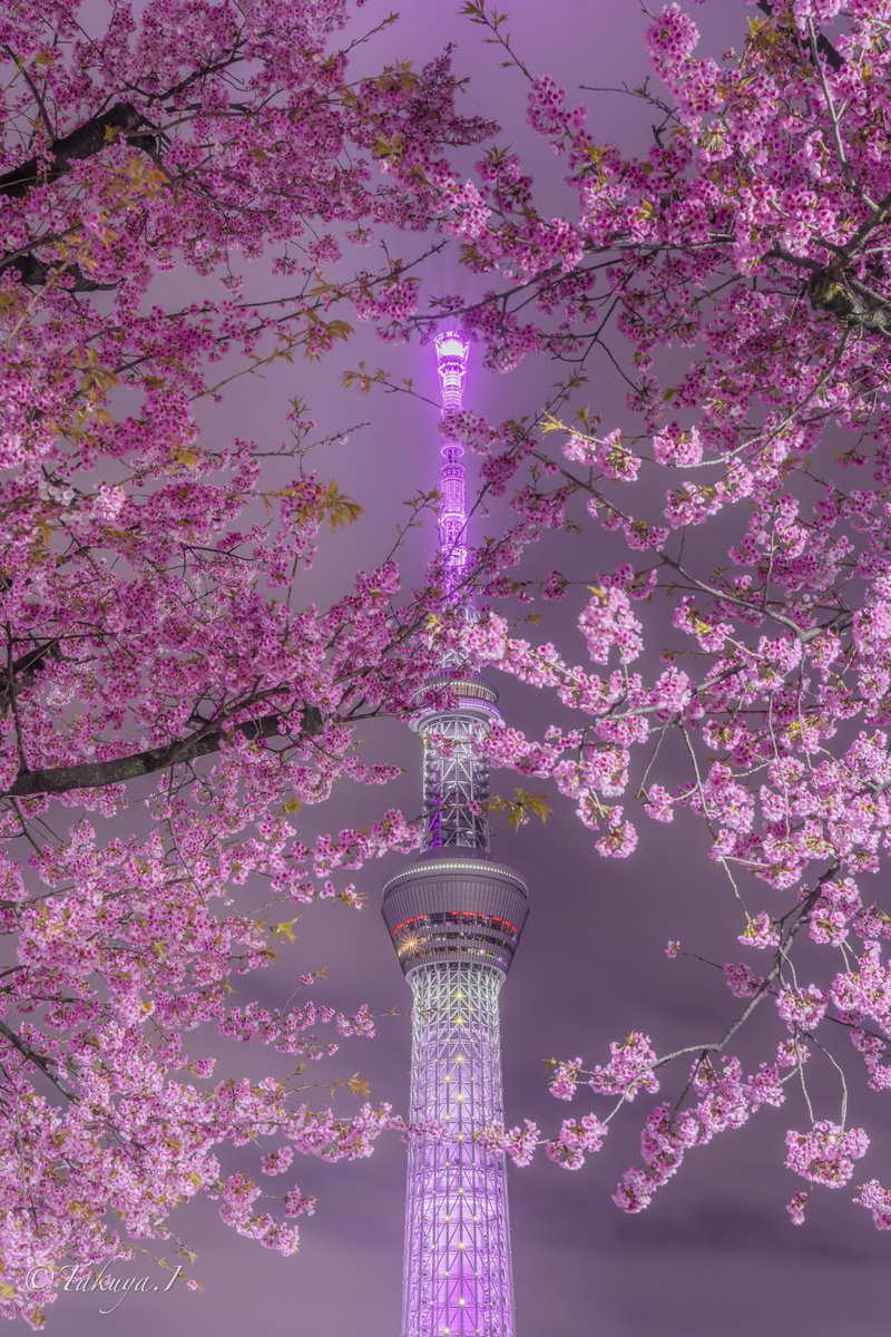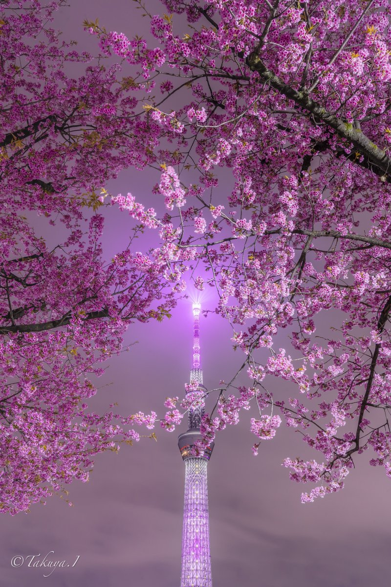 艶やかな夜桜に包まれるちょこんとスカイツリーが可愛い