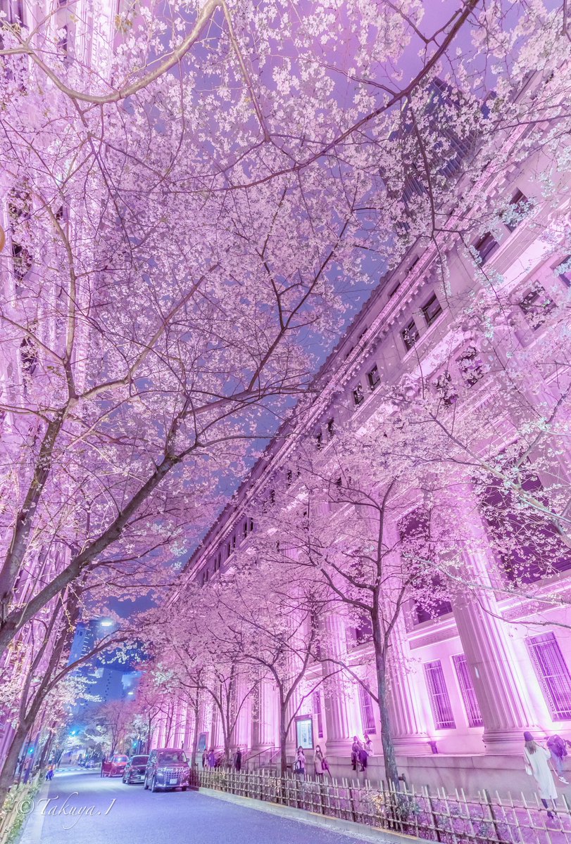 大都会で闇夜切り咲く一閃の夜桜に目を奪われた