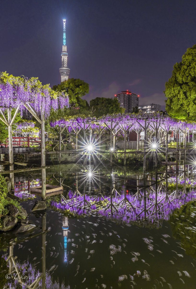 宵に見る藤とスカイツリーの共演