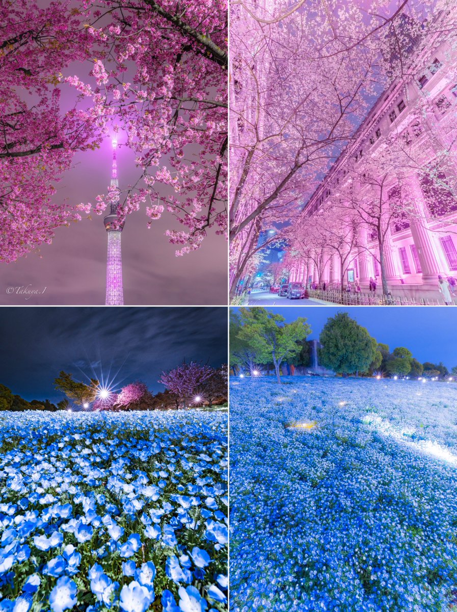 夜の桜とネモフィラの共演がまばゆい美しさだった