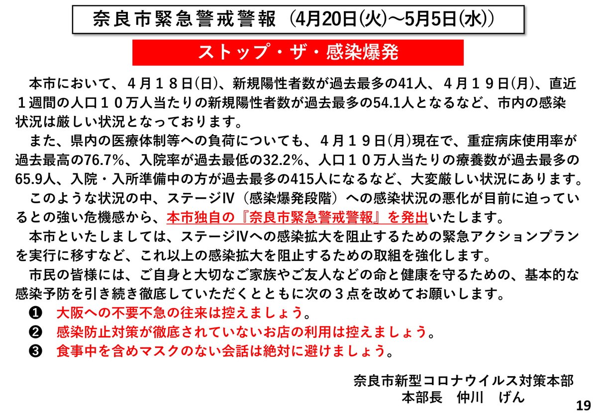 奈良市への波及を最大限に警戒しながら、引き続き対応してまいります。