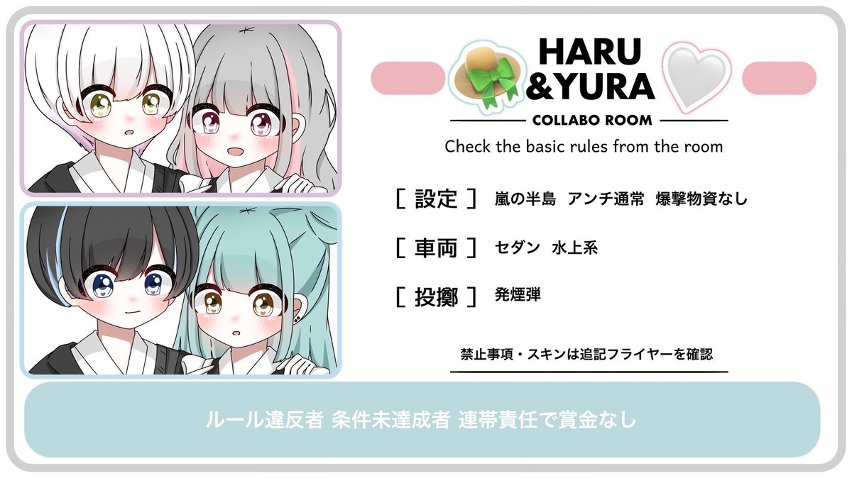 はるちゃんしか勝たんやろほんと 🕛 12月4日 15:00 #15時 🦕 #デュオ #デュオゲリラ 🌧 確1000×p 一500×p 🐋 id + 15:00 デュオ 🤍 @haru7__m @yura__o_ Follow Rt └ FF.交換枠所持巻き込み♲ pass Just @yura__o_