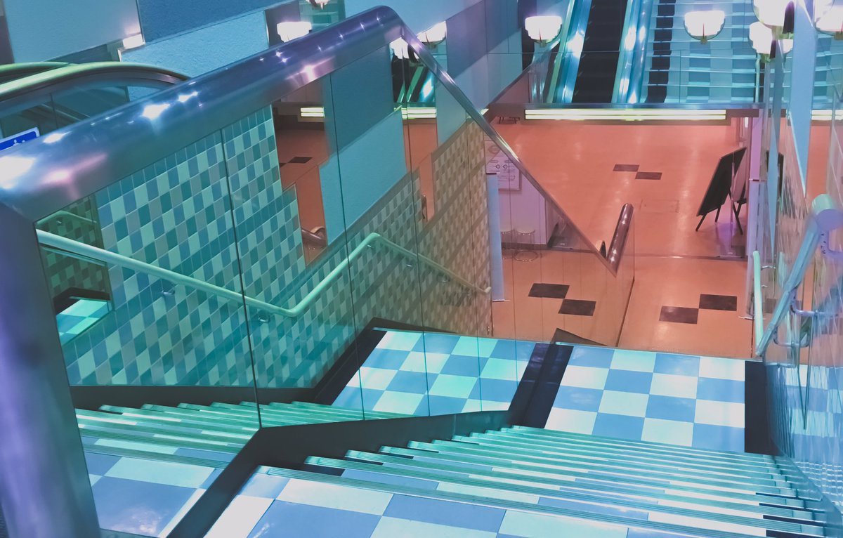 昨日訪れた新潟の長岡駅ビルの内装、1980年建設当時の雰囲気が残りとてもfuture bass的だった