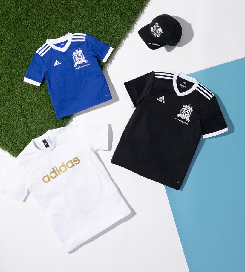 東京ディズニーランドと東京ディズニーシーでは、祝祭感あふれる35周年限定デザインの「アディダス」プロデュースのアイテム全13種類が、6月7日(木)より登場!