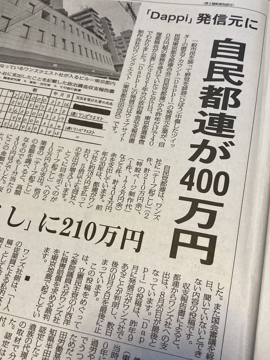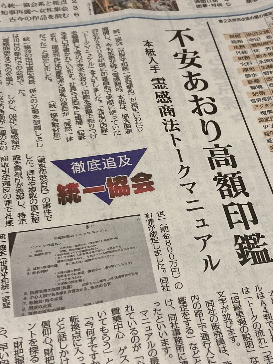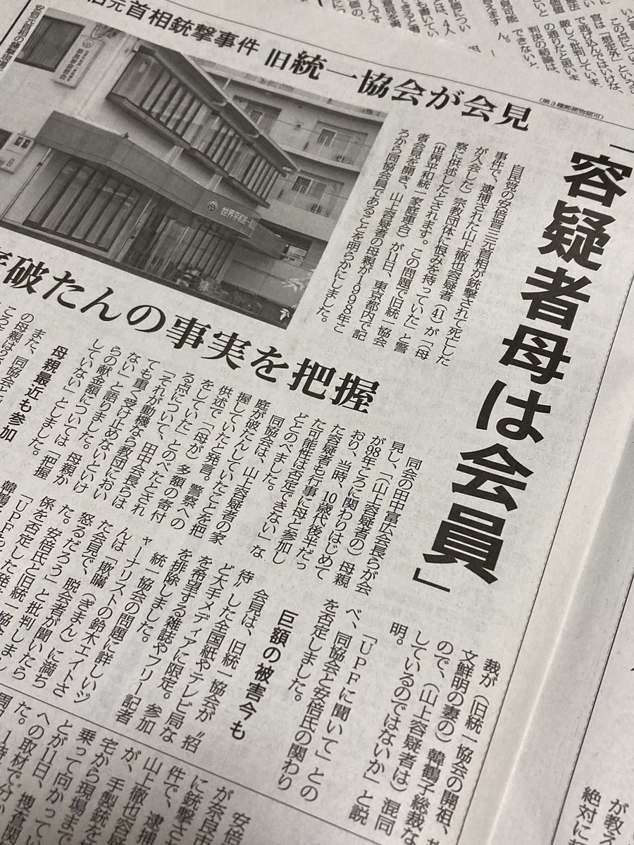全国紙が統一協会と自民党の関係をほとんど取り上げない。「しんぶん赤旗」や週刊誌の独壇場になっている。