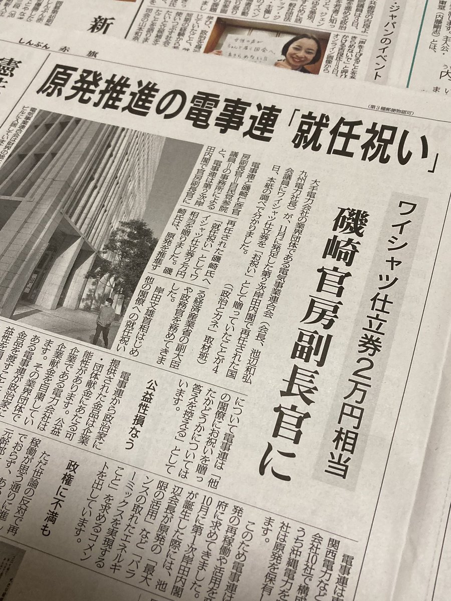 維新の違法献金疑惑は「しんぶん赤旗」が3日付でスクープしました。