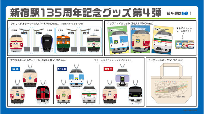 「新宿駅135周年記念グッズ 第3弾」や「高田馬場駅110周年記念グッズ」の再販もあるよ🙌