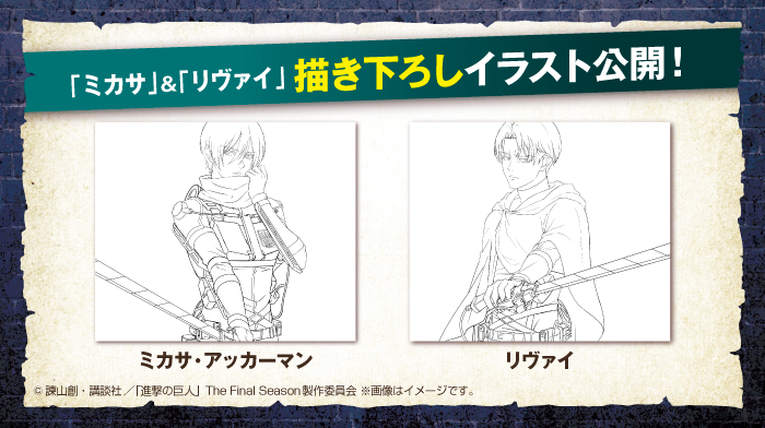 お待たせしました…描き下ろしイラストの線画「リヴァイ」&「ミカサ」を公開します✨