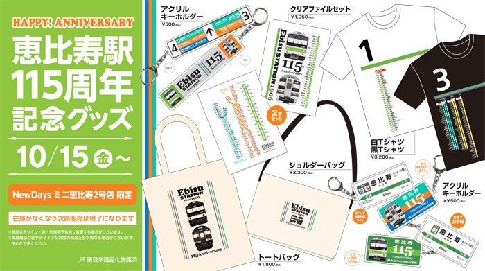 🚃恵比寿駅115周年記念グッズ 取扱店舗:NewDaysミニ恵比寿2号