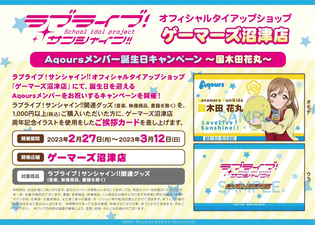 ゲーマーズ沼津店よりAqoursメンバー誕生日フェアのお知らせです