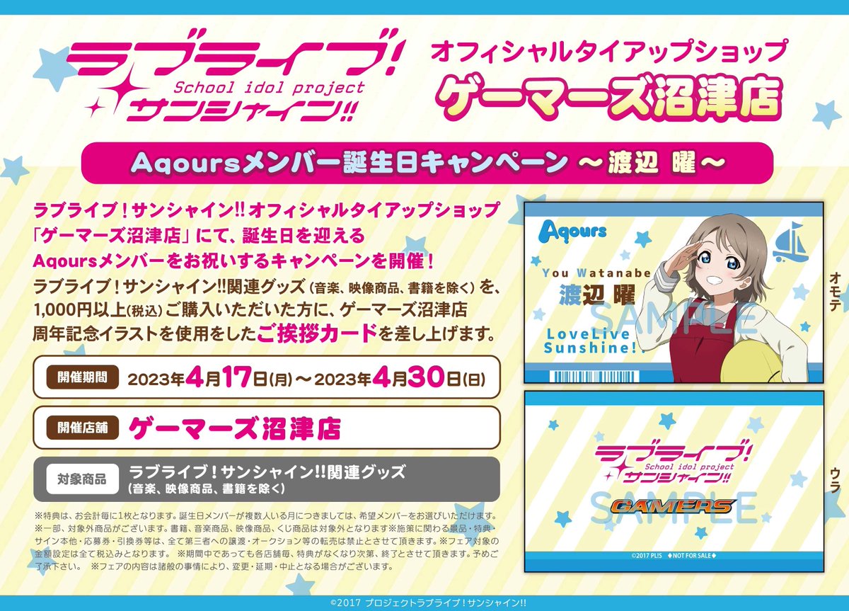 ゲーマーズ沼津店よりAqoursメンバー誕生日フェアのお知らせです!