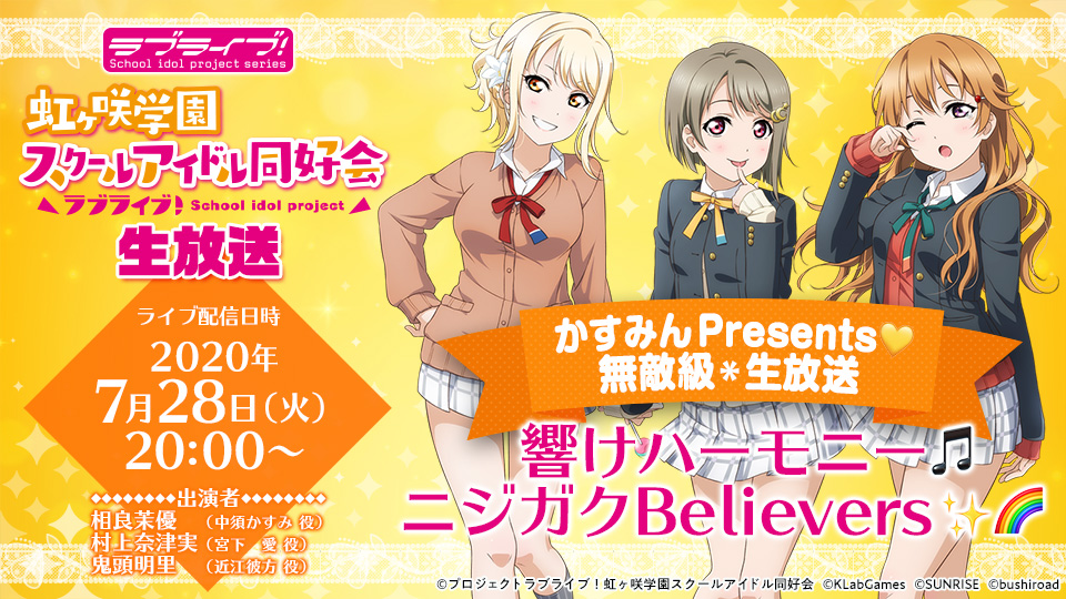 【配信情報】『かすみんPresents💛無敵級*生放送 響けハーモニー🎵ニジガクBelievers🌈✨』のお知らせです!
