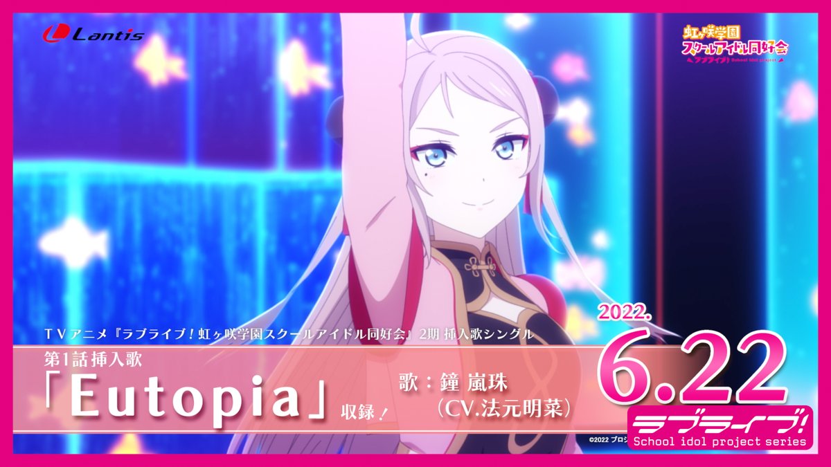 TVアニメ『ラブライブ!虹ヶ咲学園スクールアイドル同好会』2期第1話挿入歌「Eutopia」歌:鐘 嵐珠(CV.法元明菜)のSPOTを公開中‼️🎉