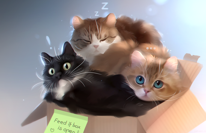 Artwork featuring three cool cats I have painted before C: @CuriousZelda , Maru and Hosico! <3