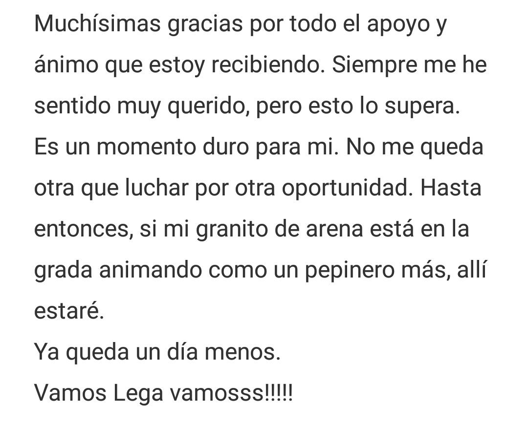 Me diste muchísima fuerza, consejos y vi la gran persona que eres en un momento difícil para mi. Si alguien supera esto eres tú.#AnimoAsenjo