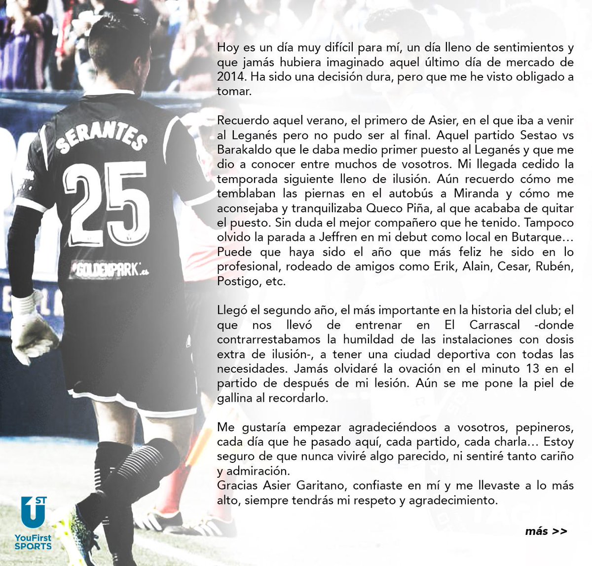 Feliz de ser parte del @CDLeganes más años. Gracias por confiar en mí y a todos por vuestros mensajes bit.ly/2hu0FLR #Serantes2020😉