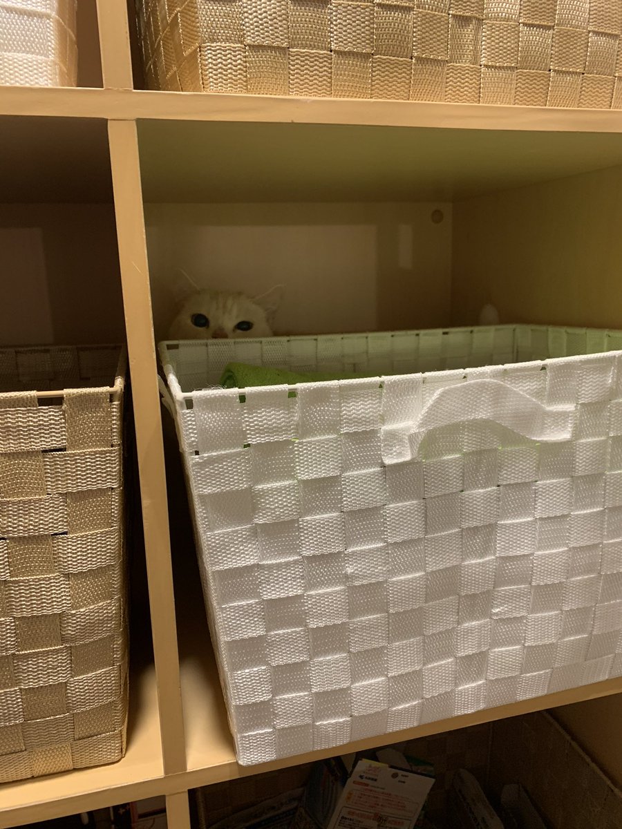 棚に猫が落ちてた