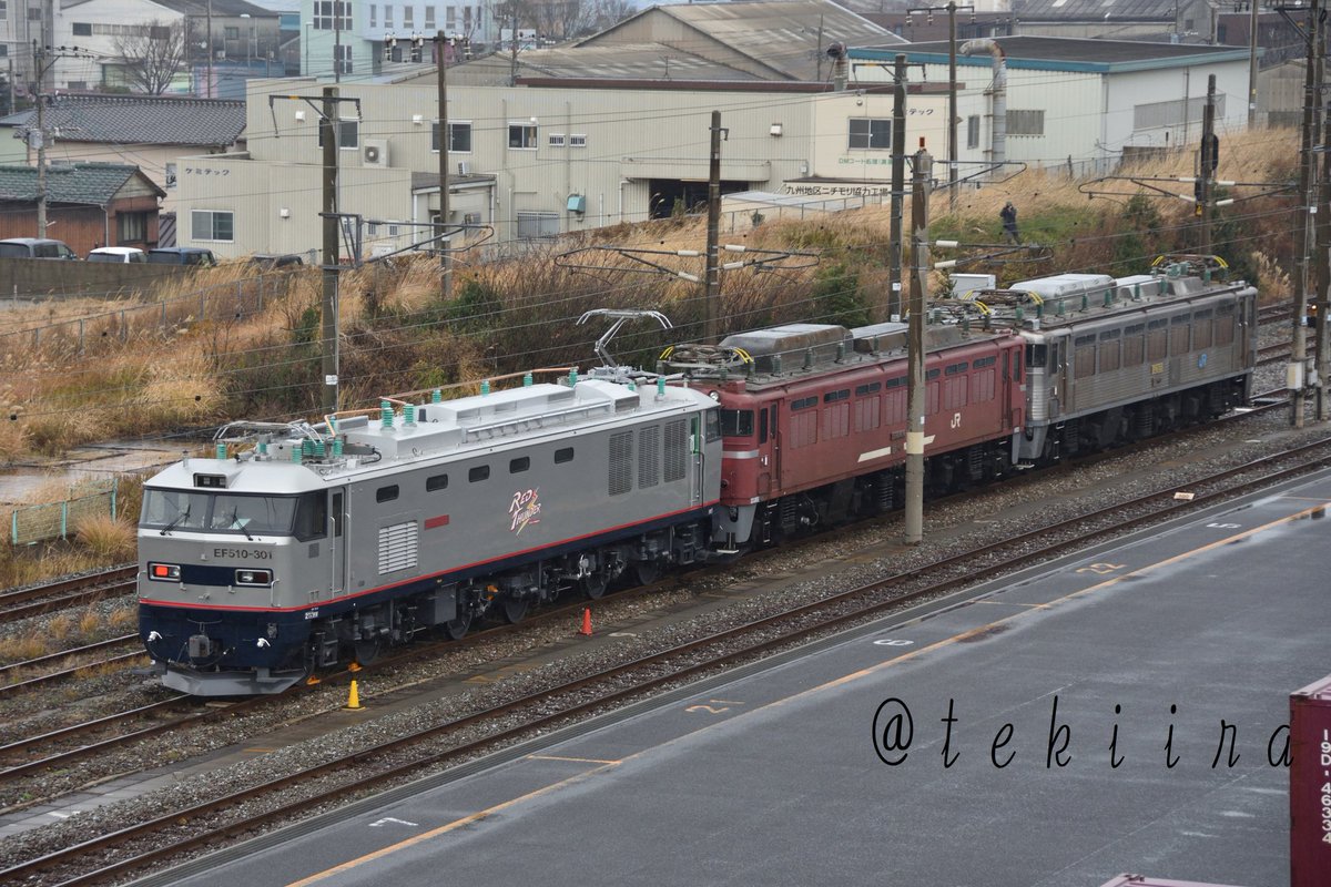 北九州ターミナル構内試運転 EF510-301[無]+EF81-404[門]+EF81-303[門] 試2590 kk出場 DD200-1[愛]+EF81-403[門]