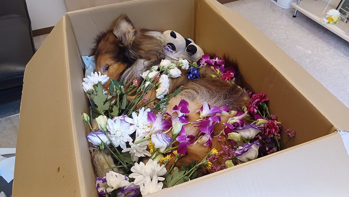 出棺です😢 1人ぽっちのお葬式 最後のお別れ🙏 6年と5ヶ月 楽しかったよ〜🤗 みんないっぱいいっぱいありがとう🤝ラッシー🌈。